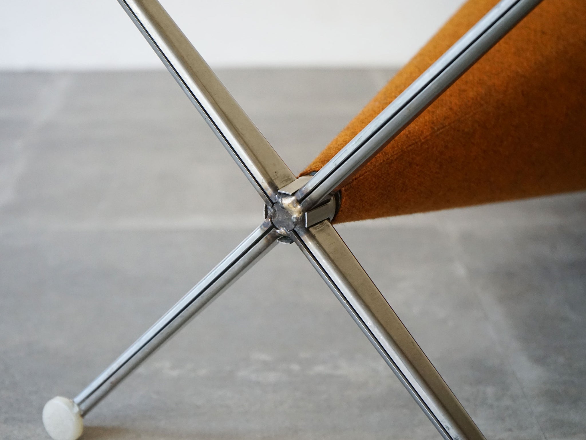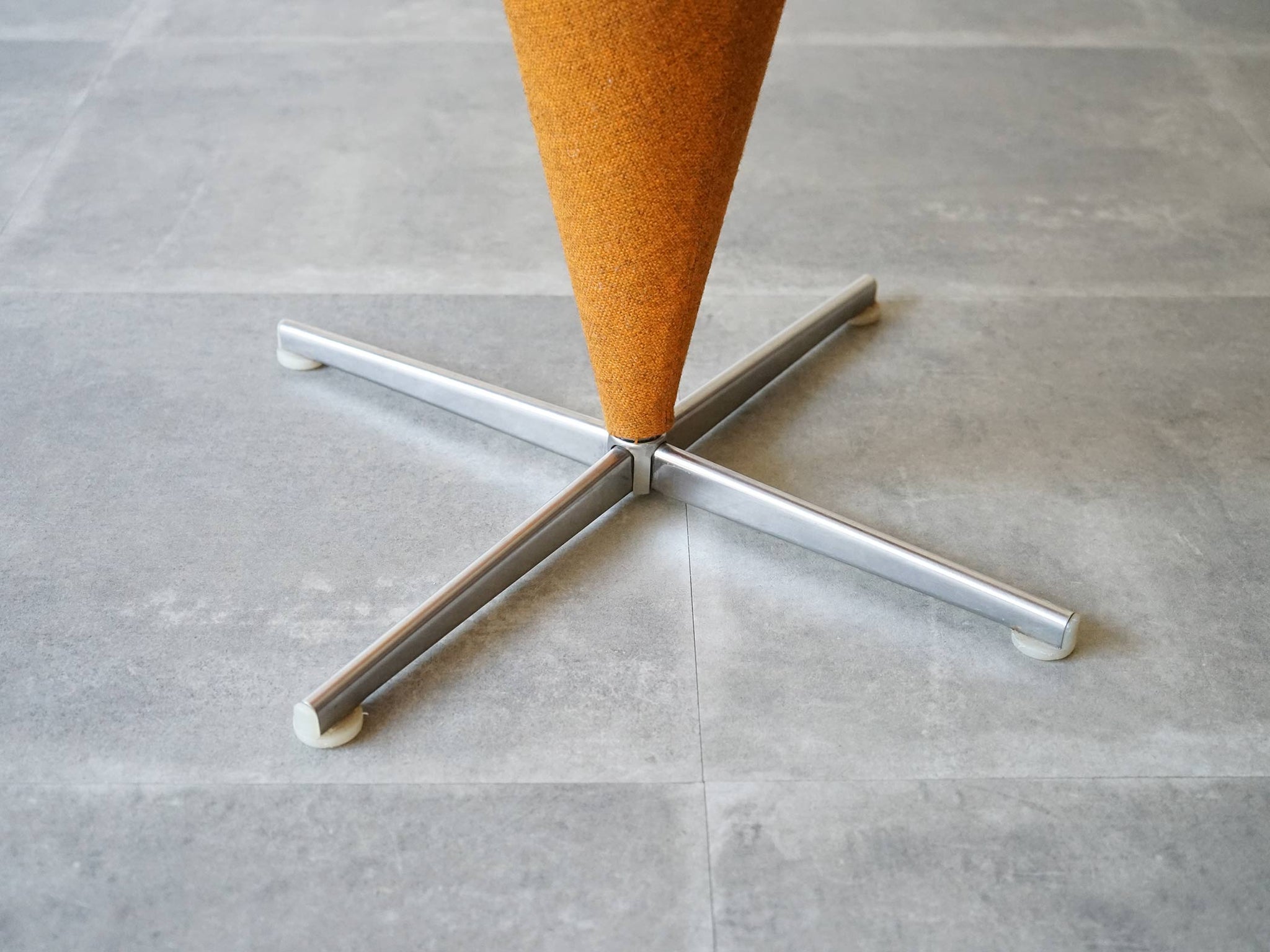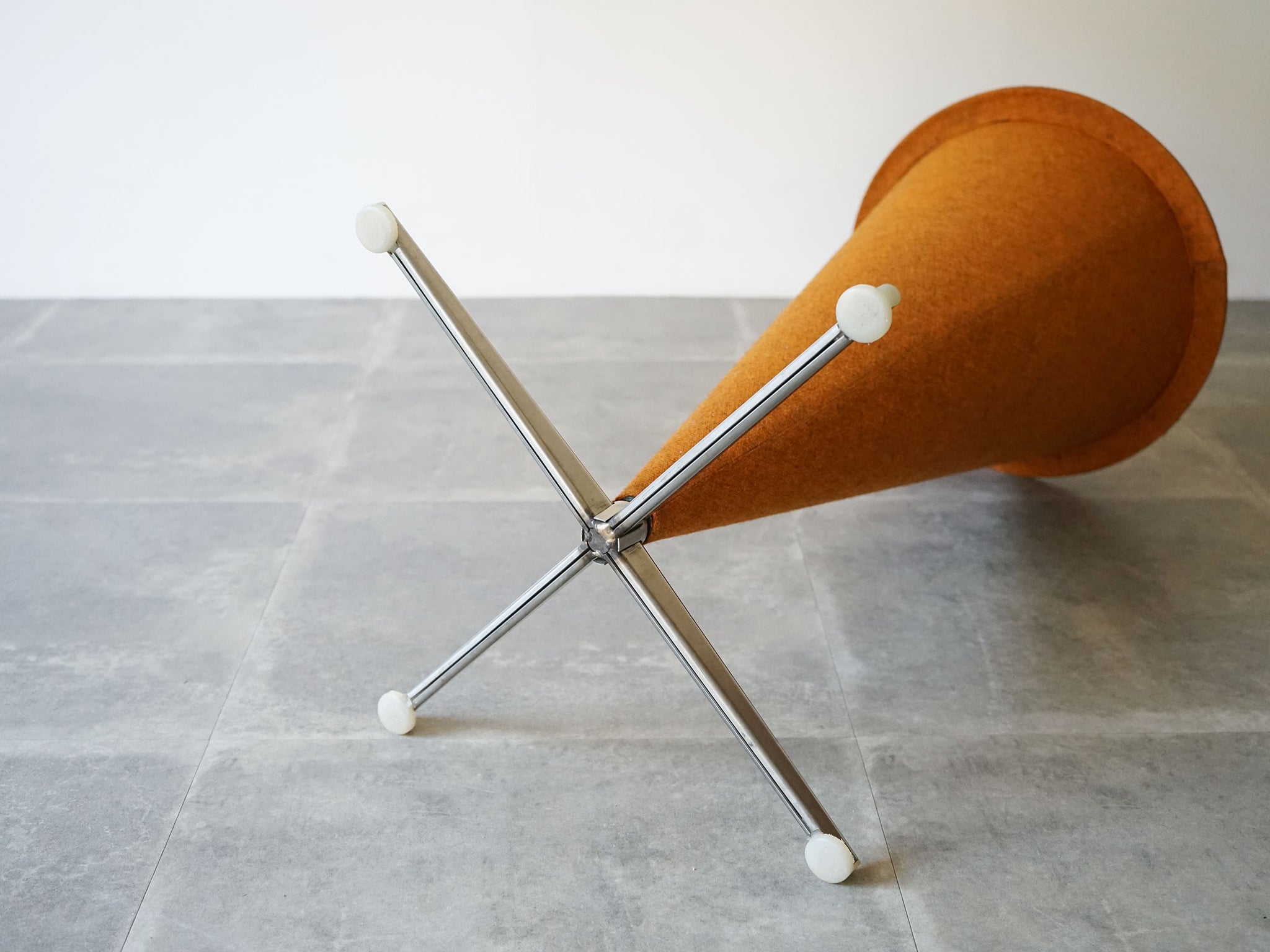 コーン スチールの土台のバースツール バーントオレンジ(濃いオレンジ)色のウール張り 1958年デザイン 1960年代のPlus-Linje製