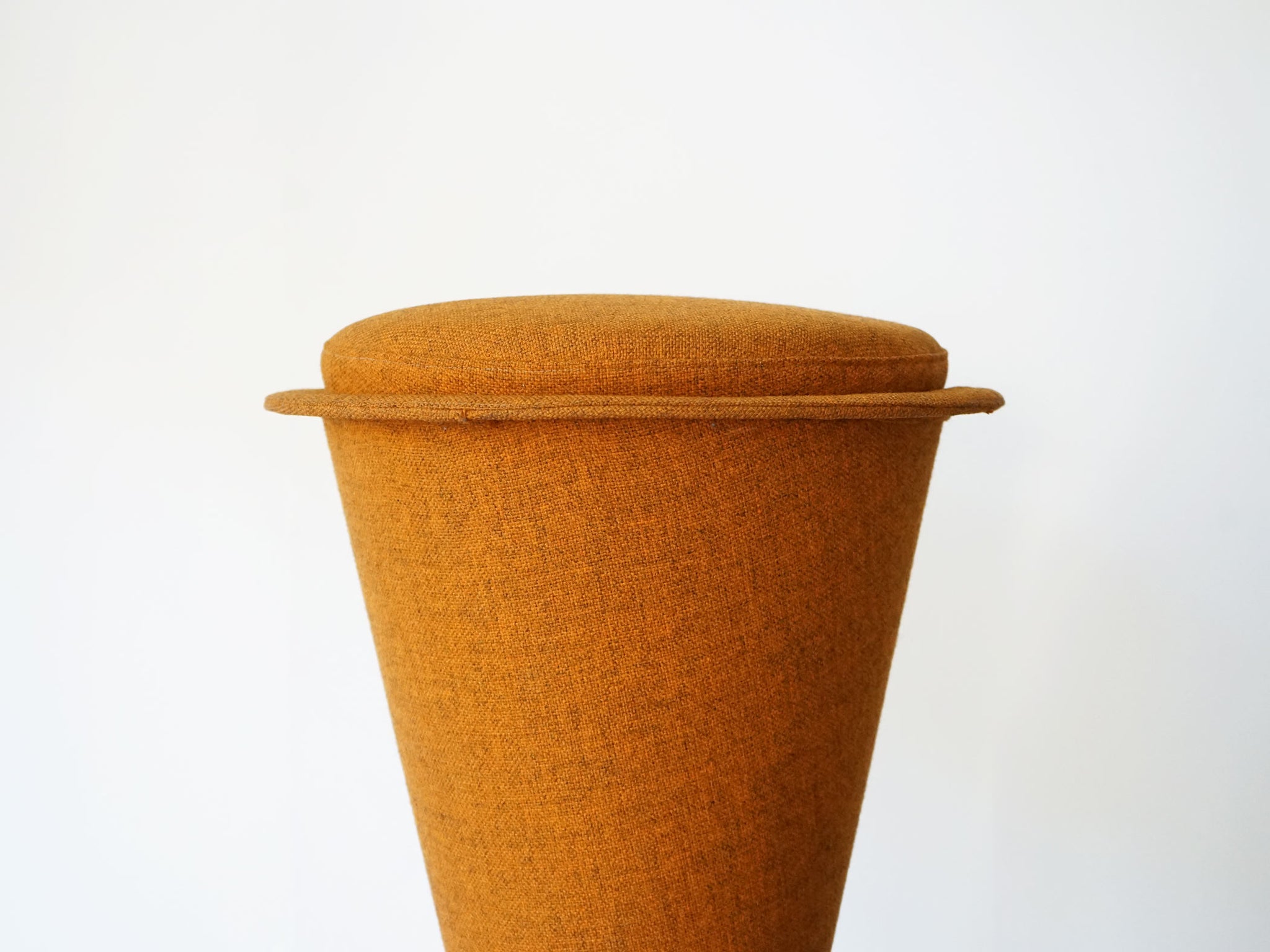 Verner Panton:“Cone” bar stools, steel base. Upholstered with burnt orange wool. Designed 1958. Manufactured 1960s by Plus-Linje.